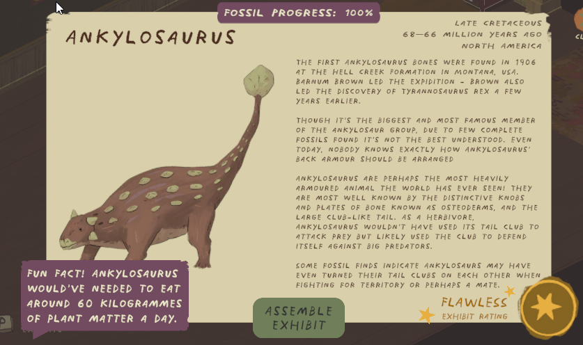 Tags | Casual, Cozy, Cute, Dinosaurs, Exploration, Isometric, Management, Non violent, paleontology, Relaxing |